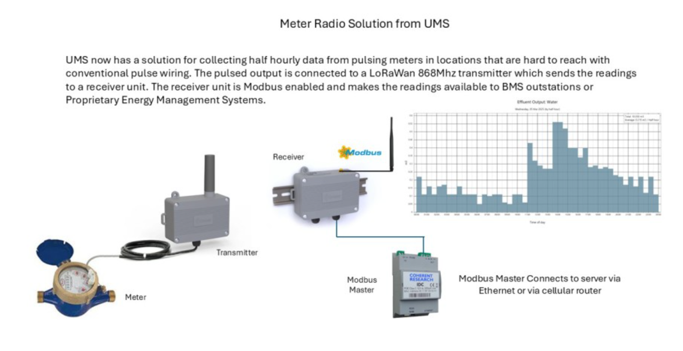 Following years of critiquing developments and some false dawns across various wireless technologies, UMS are happy to endorse the LoRaWAN solution in partnership with data collection and comms infrastucture by Coherent Research, as the ideal blend of range, reliability, data quality and useability. This solution offers genuinely robust connectivity to remote locations, without losing fidelity as per other radio and pulse-derived options. We have this arrangement is in-situ across a growing portfolio of customer sites, without a single drop in data or uptime.